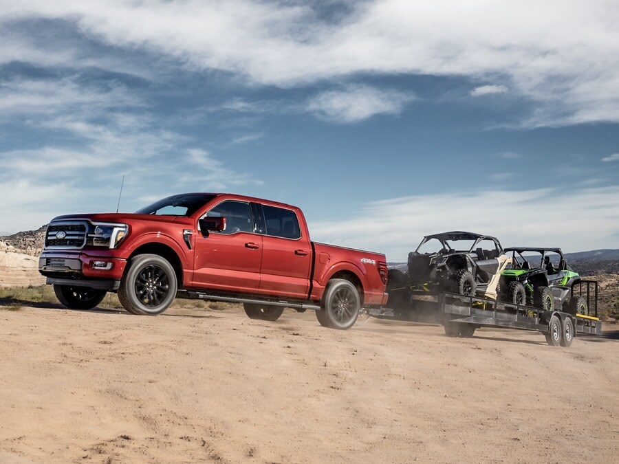 There's tons of capability at the ready. That's because the 2024 F-150® pickup delivers an astounding class-leading available tow rating up to 13,500 lbs. * and 2,445 lbs. ** payload. All the power you need to haul tools, camper or whatever.