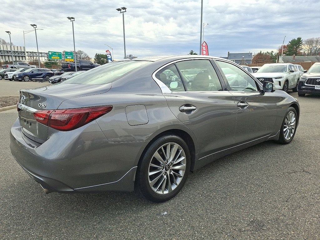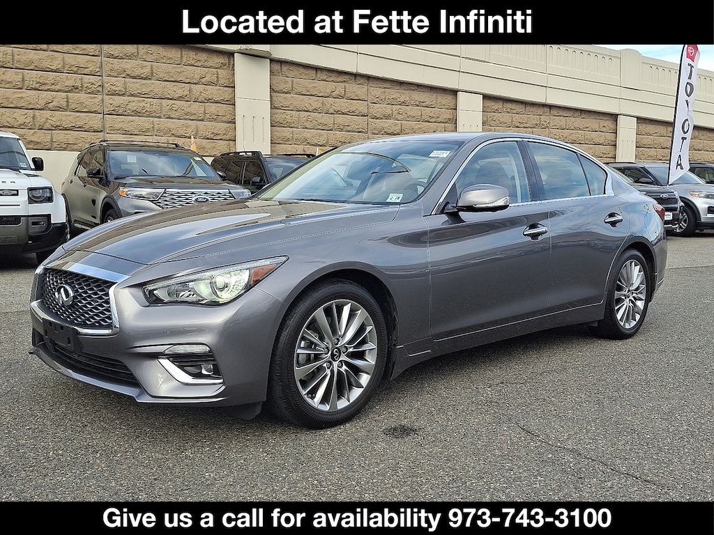 **BOUGHT SERVICED AND TRADED AT FETTE AUTO GROUP** **INFINITI CERTIFIED** **REMAINDER OF FACTORY WARRANTY** **BACKUP CAMERA** **BLUETOOTH HANDSFREE** **INCLUDES WARRANTY** **ONE OWNER** **GOOD BRAKES** **GOOD TIRES** **FACTORY MAINTENANCE UP TO DATE** **MOONROOF SUNROOF** **APPLE CAR PLAY** **ANDROID AUTO** **USB PORT** **BLIND SPOT MONITOR** **HEATED SEATS**. New Price!Certified. INFINITI Certified Pre-Owned Details: * 1-Year Prepaid Service Visit Included. 6 Year/75000 Mile Warranty for Vehicles With Less Than 15000 Miles at Time of Certification. 6 Year/Unlimited Mile Warranty for Vehicles with 15001-60000 Miles at Time of Certification. INFINITI ONLY Models Qualify. * Limited Warranty: 72 Month/Unlimited Mile from original in-service date * Transferable Warranty * Roadside Assistance * 167 Point Inspection * Vehicle History * Warranty Deductible: $0CARFAX One-Owner. Clean CARFAX.Odometer is 17612 miles below market average! 19/27 City/Highway MPG2023 INFINITI Q50 LUXE LUXEGIVE US A CALL AT (973) 779-3100 AND COME EXPERIENCE FETTE'S USED CAR SUPERSTORE LOCATED AT FETTE INFINITI! ALL MAKES AND MODELS AVAILABLE. HUNDREDS OF VEHICLES IN STOCK! Come see why we recently earned the prestigious Dealer Rater Consumer Satisfaction Award.